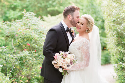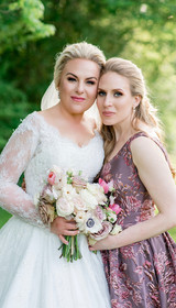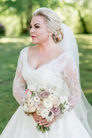 "Doing wedding hair & makeup for someone I've worked with so many times before was both fun and a challenge. We had done SO many different looks for Hannah's various work shoots, that it was a little difficult deciding which to do for her wedding. Hannah had the idea of bringing a rose element to her makeup color palette, to play off of the flower garden aspect of her wedding venue. That was definitely the right choice, because it complemented the surroundings so beautifully that day.